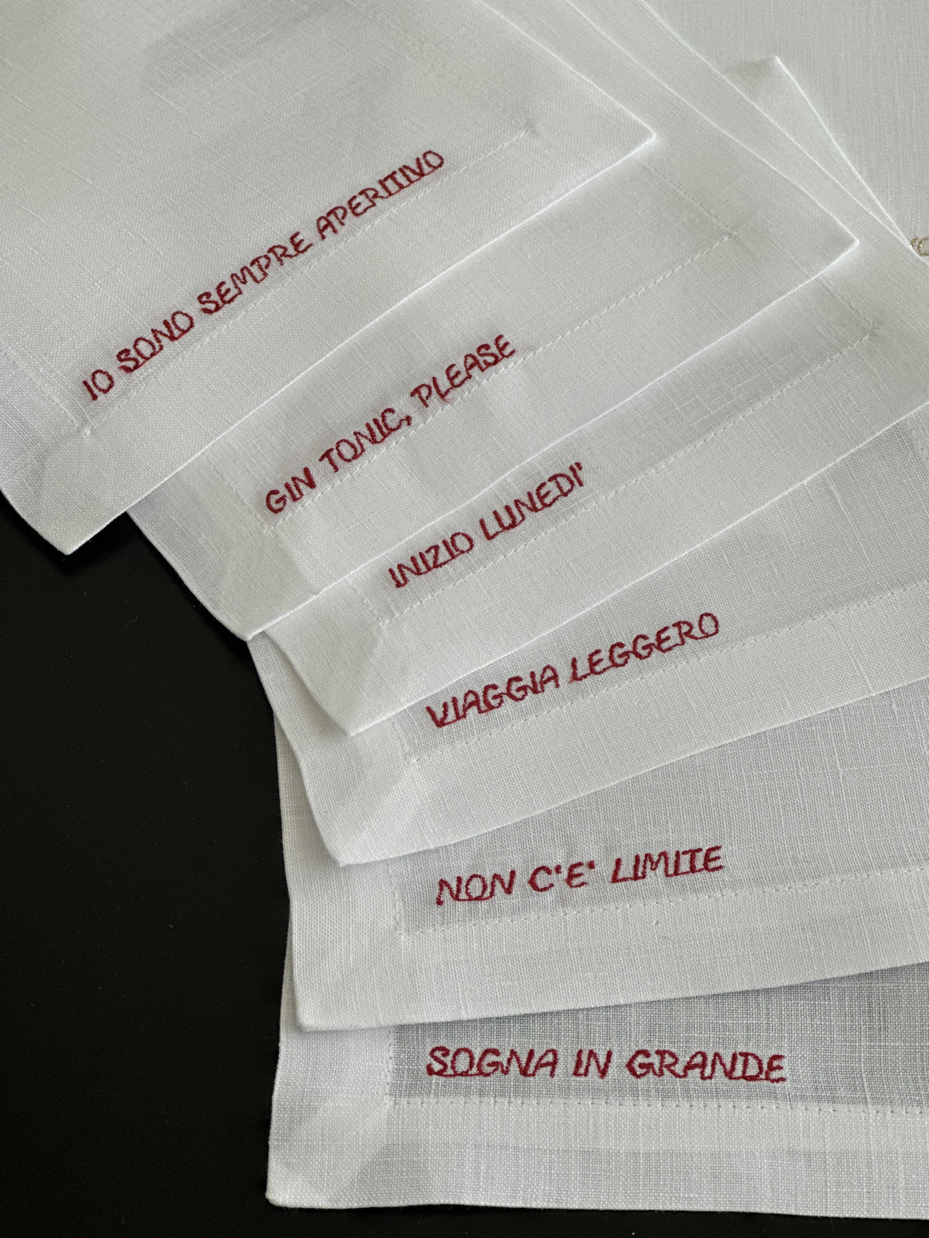 Perché non rendere ogni brindisi unico e speciale? I set di tovaglioli da aperitivo MB Maison, in puro lino, arricchiti dai nostri ricami, portano un tocco di magia e classe al momento dell’aperitivo.