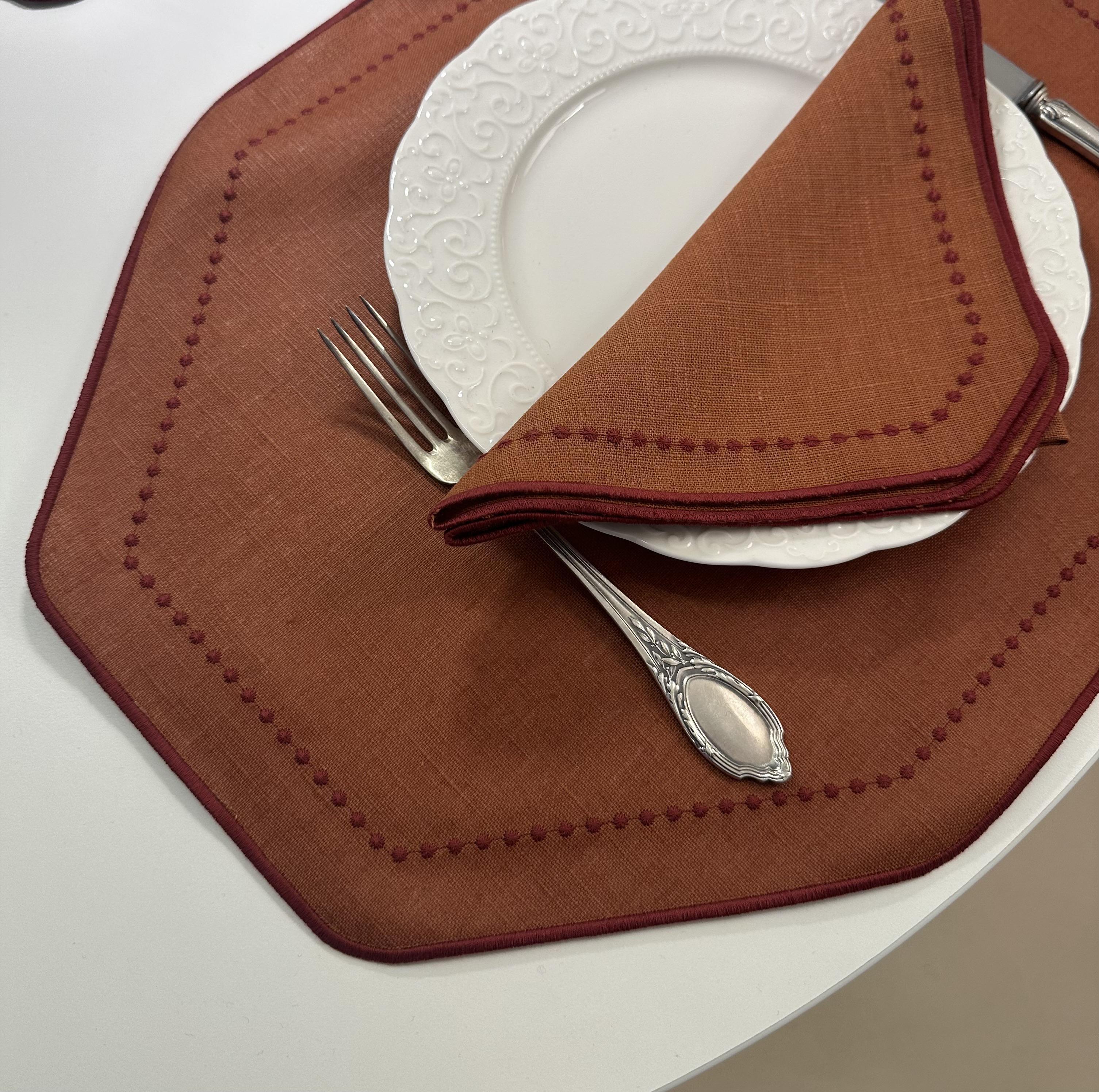 RUST STAIN-RESISTANT LINEN WITH AMARANTH EMBROIDERY
